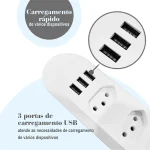 Versatilidade Máxima: Equipado com 4 tomadas de extensão universais e 3 portas USB, é compatível com quase todos os dispositivos abaixo de 2500W.